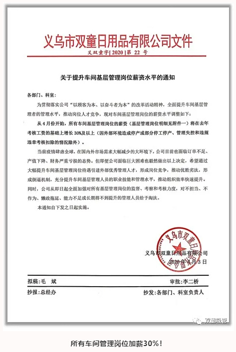 當(dāng)前,全球疫情肆虐,經(jīng)濟(jì)環(huán)境急劇惡化,不少企業(yè)陷入經(jīng)營困境,開始了裁員降薪潮。在這樣的大背景下,2020年4月2日,“雙童”毅然推動第二波改革活動,并將改革主題確定為“組織效率已成雙童生死劫”!次日,“雙童”發(fā)布了一份紅頭文件,明確提出給員工加薪且至少30%以上,引發(fā)了全廠沸騰!這背后究竟是何邏輯?有何深意?