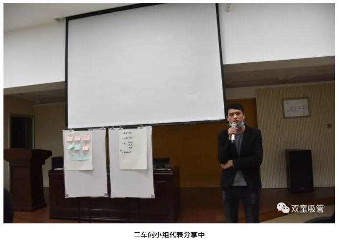 此外,二車間小組代表還表示,自己剛到公司不久,會帶著一些不一樣的管理思維與“雙童”的現(xiàn)有的管理思維發(fā)生碰撞,產(chǎn)生一些新的東西。同時,他還希望大家能夠有一種開放包容的心態(tài),多多接受一些來自外部的新思維、新方法,從而形成一種適合“雙童”的全新的管理方法。