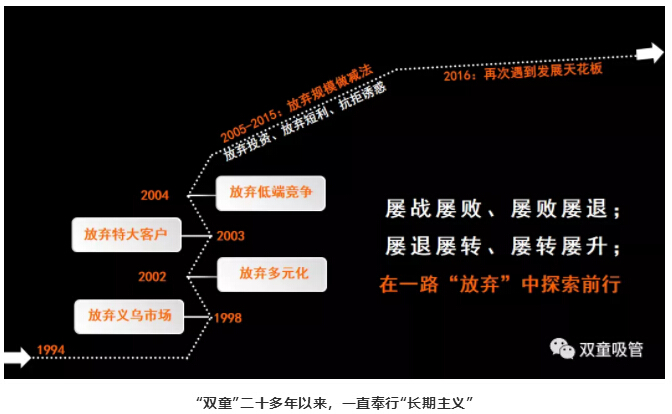 每一次危機,都隱藏著機會,但只有修煉好內(nèi)功,居安思危,向死而生,才能在動蕩時代下更好的生存。“雙童”選擇不做“一錘子買賣”,不賺快錢,踏踏實實沉下心來做事,我們堅信,厚積薄發(fā),堅守“長期主義”的企業(yè)將會有長足發(fā)展,能夠迎來充滿希望的美好明天。