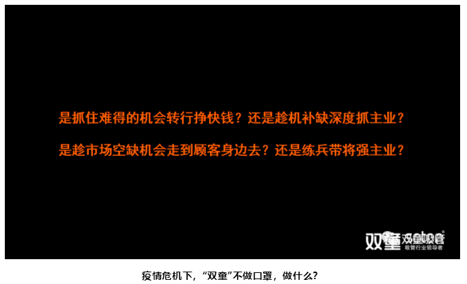 那么,既然不做口罩,“雙童”要通過怎樣的方式來渡過這次危機,從而讓自己活下去的呢?