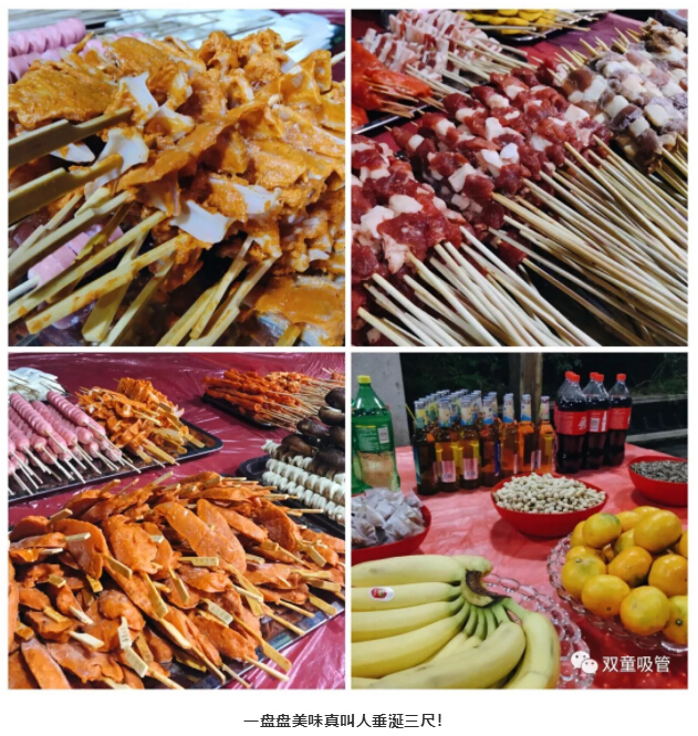 走進(jìn)生日會現(xiàn)場后,首先映入眼簾的就是滿滿一桌的燒烤食材:羊肉串、牛肉串、五花肉、雞柳、里脊肉……放眼望去全是肉,簡直就是肉食主義者的天堂(擦擦口水