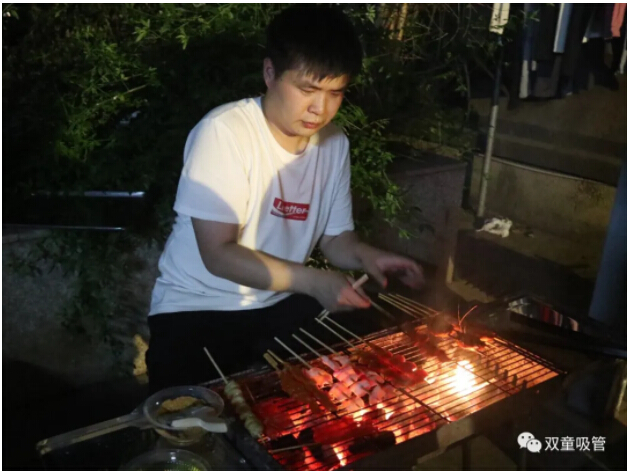 大家爭相圍坐在燒烤爐前準(zhǔn)備一展身手,你別說,一個個都烤得有模有樣的,快來看看哪一位能成為本次生日會的“燒烤大師”吧!