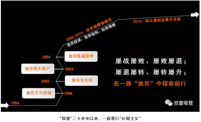 答:這些年來,‘’活下去”確實已經(jīng)成為“雙童”最大的使命。對我們而言,提出“活下去”這樣一種危機理論,是因為在外部動蕩環(huán)境下,計劃沒有變化快,這就要求企業(yè)做出轉(zhuǎn)變,這種轉(zhuǎn)變是內(nèi)在的,其本質(zhì)是提醒組織成員,通過直面“死亡”,獲得反悟,讓自己重生。并且,我們所說的“活下去”,并不是茍且偷生,而是要有價值、有尊嚴(yán)地“活下去”,唯有如此,這樣的使命對“雙童”的長期發(fā)展才更有意義。