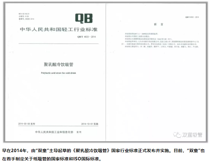 此刻,當人們意識到塑料產(chǎn)業(yè)面臨徹底顛覆,環(huán)保產(chǎn)品是未來發(fā)展趨勢時,“雙童”早已在行業(yè)變革前做好了準備,從十多年前開始研發(fā)環(huán)保吸管,還主導制定環(huán)保吸管的相關標準,緊握住了環(huán)保吸管產(chǎn)品的主動權和話語權!