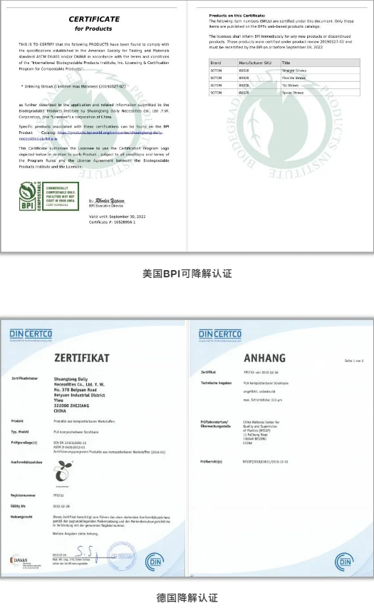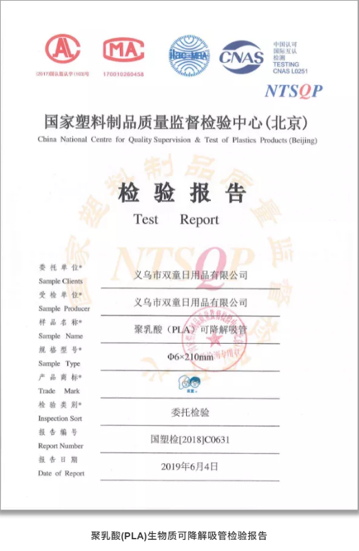 為了能夠讓客戶更加放心地選購可降解吸管,“雙童”目前已通過各類可降解產(chǎn)品的認(rèn)證資質(zhì),如北京可降解報告、國際認(rèn)證、JJ標(biāo)、海南禁塑替代品電子監(jiān)管碼等。如在海南,當(dāng)?shù)叵M(fèi)者在購買已獲電子監(jiān)管碼的禁塑替代品時,可使用手機(jī)掃描二維碼進(jìn)行識別,能夠了解到該產(chǎn)品的生產(chǎn)信息,為全生物降解塑料制品的市場監(jiān)管、質(zhì)量監(jiān)督抽查和產(chǎn)品追溯提供了便利。