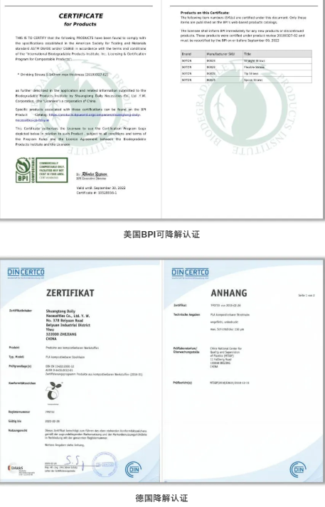 為了能夠讓客戶更加放心地選購可降解吸管,“雙童”目前已通過各類可降解產(chǎn)品的認(rèn)證資質(zhì),如北京可降解報(bào)告、國際認(rèn)證、JJ標(biāo)、海南禁塑替代品電子監(jiān)管碼等。如在海南,當(dāng)?shù)叵M(fèi)者在購買已獲電子監(jiān)管碼的禁塑替代品時(shí),可使用手機(jī)掃描二維碼進(jìn)行識別,能夠了解到該產(chǎn)品的生產(chǎn)信息,為全生物降解塑料制品的市場監(jiān)管、質(zhì)量監(jiān)督抽查和產(chǎn)品追溯提供了便利。