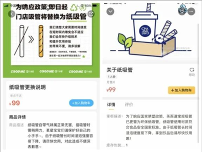 除了星巴克、麥當(dāng)勞、喜茶等幾個月前甚至去年就開始行動的品牌,這陣子剛換上環(huán)保類吸管的各家茶飲店,線上線下免不了一番宣傳和解釋。打開外賣App,不少茶飲店在頁面顯眼處打出了告示:“愛護(hù)環(huán)境從一根吸管做起”“可降解吸管,助力環(huán)?!?,還有溫馨提醒:“紙吸管長期浸泡硬度易下降,請盡快飲用”“小可愛們插吸管時需稍用力,且保護(hù)好自己的手哦”“我們會盡快升級技術(shù)和提升飲用體驗(yàn)”……
