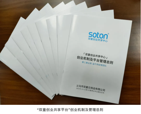2015年后,“雙童”在遭遇吸管產(chǎn)業(yè)天花板的環(huán)境下,意識到僅靠專注和堅持已難以突破巨變時代的持續(xù)挑戰(zhàn),從而堅定推動組織變革,打破經(jīng)營慣性,在商業(yè)模式創(chuàng)新下設(shè)立“雙童創(chuàng)業(yè)共享中心”,推動公司由管理型企業(yè)向平臺型企業(yè)轉(zhuǎn)變,充分調(diào)動員工的積極性,不拘一格發(fā)現(xiàn)人才,全力探索全新的商業(yè)模式,鼓勵有夢想,想創(chuàng)業(yè)的員工共同建立“創(chuàng)業(yè)體”自主經(jīng)營,通過協(xié)同創(chuàng)造,實現(xiàn)企業(yè)與員工共同成長!