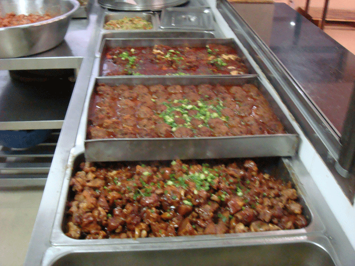 公司食堂工作人員為職工定制的自助餐菜肴一角