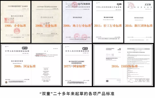 所以,在大多數(shù)人還沒有意識到標(biāo)準(zhǔn)的重要性時,“雙童”在20多年前就意識到了。從1997年開始,“雙童”先后主導(dǎo)起草了《聚丙烯飲用吸管》的行業(yè)標(biāo)準(zhǔn)、浙江標(biāo)準(zhǔn)、國家標(biāo)準(zhǔn)、ISO國際標(biāo)準(zhǔn)等國家級標(biāo)準(zhǔn)的編制工作,從而牢牢掌握住全球吸管行業(yè)發(fā)展的脈搏,獲得了全球吸管產(chǎn)業(yè)的標(biāo)準(zhǔn)制定權(quán)和行業(yè)話語權(quán)!
