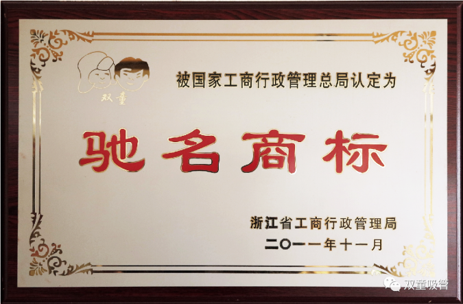 “雙童”商標榮獲國家工商總局認定的“中國馳名商標”稱號,成為了義烏歷史上第八件中國馳名商標