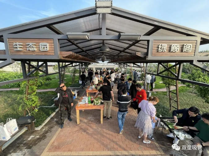 分享結(jié)束,眾人期待已久的燒烤Party安排在“雙童”空中生態(tài)園,伴隨著生態(tài)園里陣陣花香,大家邊吃邊聊,相處甚是融洽!