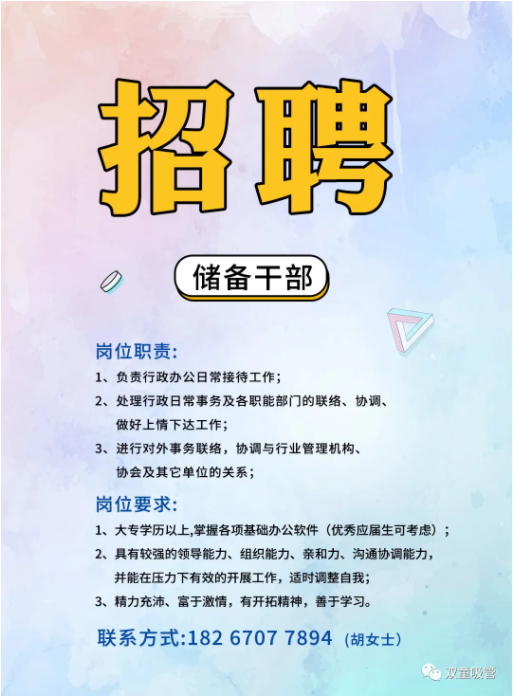 ?? 儲(chǔ)備干部 聯(lián)系方式:182 6707 7894 (胡女士)