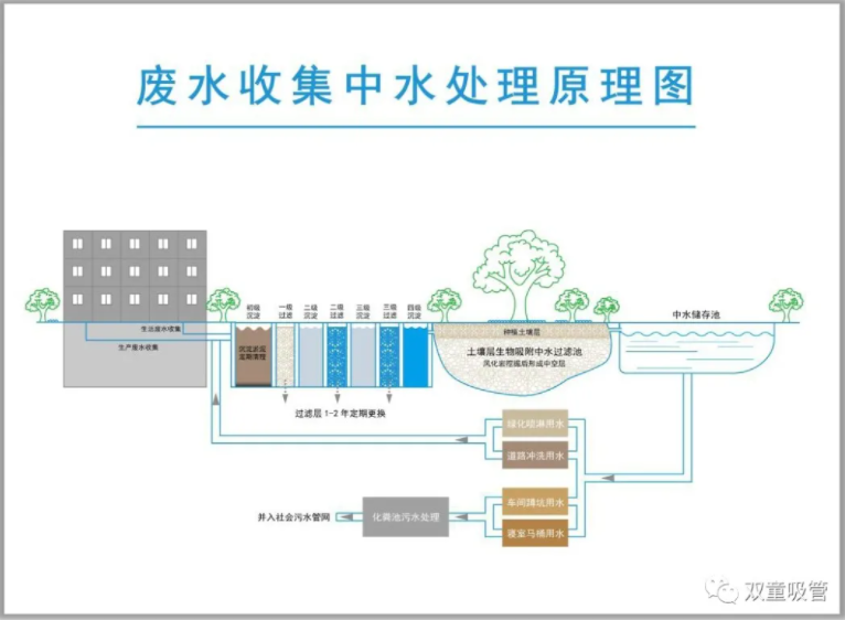處理過后的廢水可以 用于廠區(qū)地面、道路沖洗用水 幾百個寢室的抽水馬桶不耗費(fèi)一噸自來水