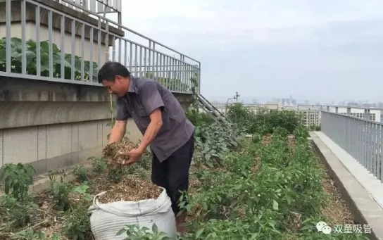 屋頂花園經過分揀的“胡柚”在生物質垃圾處理池進行發(fā)酵