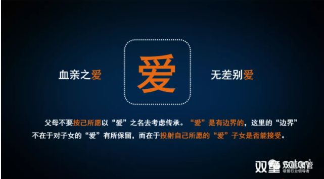 雙童在組織變革后明確形成了“組織關(guān)系三原則”,很多人不理解樓老師在十年前做出的“子女不接班”這樣的傳承安排,樓老師引導(dǎo)大家在傳承問題上沒有絕對的答案,雙童不讓子女接班并非我大公無私,而是運(yùn)用經(jīng)濟(jì)學(xué)的“比較優(yōu)勢”原理充分酌量后選擇的結(jié)果,是綜合考慮了子女的喜好、擅長、愿景后而得出的合理安排。當(dāng)然期間隱含的信號卻發(fā)出了巨大的想象空間。大家想想,在一家經(jīng)營了近二十年的傳統(tǒng)制造企業(yè)里面: