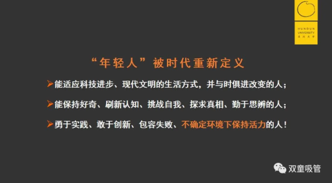 他認(rèn)為,“年輕人”是這個時代的主人。他們更能接受新的變化,更能理解新鮮事物,更能獲得新的機(jī)遇。50后、60后、70后們只能更努力地向年輕人靠攏,向年輕人學(xué)習(xí),才不會被這個時代所拋棄,才能在不確定的時代下保持活力!