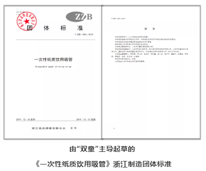 在此過程中,樓仲平帶領(lǐng)“雙童”緊隨市場發(fā)展的步伐,相繼在2014-2016年期間主導起草制定了《聚乳酸冷飲吸管》中國行業(yè)標準和浙江團體標準,在2019年又主導起草編制了《一次性紙質(zhì)飲用吸管》浙江團體標準。