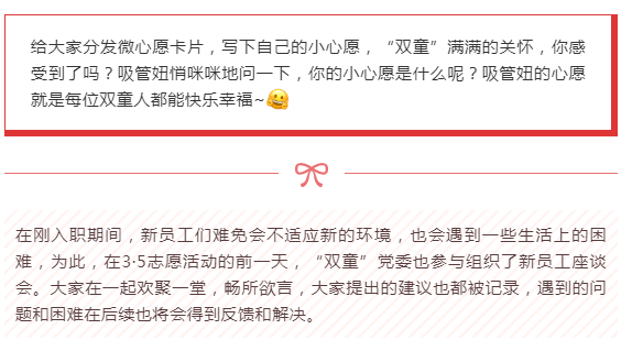 大家寫下的心愿卡和建議都已被查收,吸管妞希望大家以后遇到什么困難都可以積極反饋,“雙童”會盡力去解決每一件事,讓大家感受到“家”的溫暖~