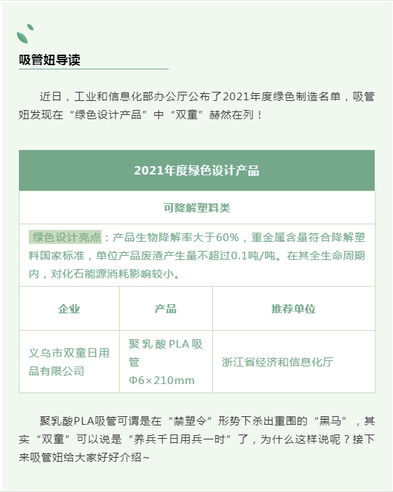 由“雙童”主導(dǎo)起草的《聚乳酸冷飲吸管》國家行業(yè)標(biāo)準(zhǔn)