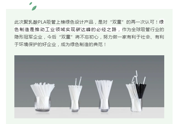 一直以來,“雙童” 沉心打造吸管行業(yè)的“綠色產(chǎn)品”,生產(chǎn)銷售一系列環(huán)??山到?、可循環(huán)吸管,為中國實(shí)現(xiàn)2030年“碳達(dá)峰”與2060年“碳中和”目標(biāo)做出企業(yè)的貢獻(xiàn)。