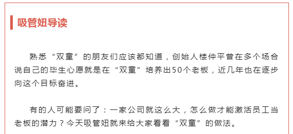 “雙童”在股權(quán)激勵(lì)和事業(yè)部創(chuàng)業(yè)共享機(jī)制的激發(fā)下,也讓更多員工從管理者向創(chuàng)業(yè)者轉(zhuǎn)變,最大程度發(fā)揮每個(gè)人團(tuán)隊(duì)的能動(dòng)性,共同把雙童的“蛋糕”做大!