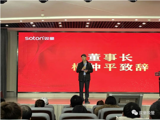 ▲ 表彰慶祝大會(huì)上“雙童”董事長(zhǎng)樓仲平發(fā)言