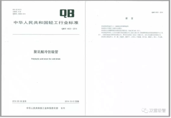 由“雙童”主導起草的《聚乳酸冷飲吸管》國家行業(yè)標準