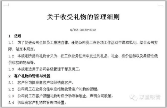 《關(guān)于收受禮物的管理細則》部分內(nèi)容