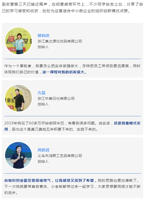 學(xué)員為創(chuàng)業(yè)裂變營“代言”