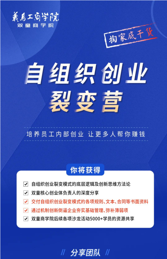 別再猶豫!你需要自組織創(chuàng)業(yè)裂變的助推力!趕快行動起來,一起相約在雙童商學(xué)院吧!