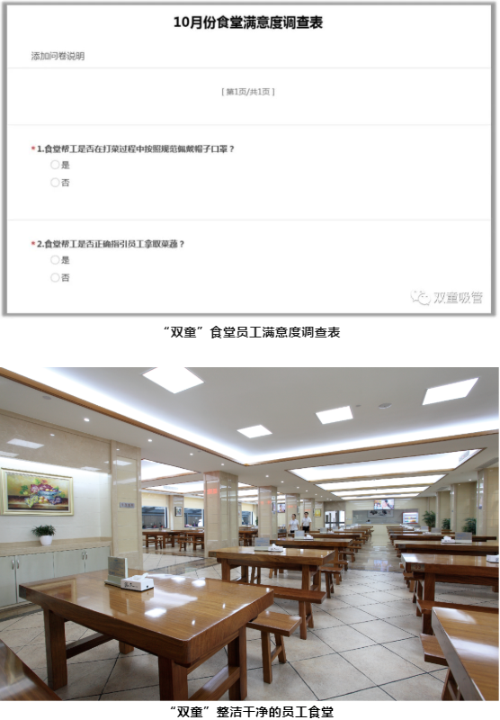 “雙童”每月會進行2次員工滿意度調查,抽取60名員工對食堂工作進行評價,調查結果將直接影響后勤餐飲團隊的績效考核。這也讓“雙童”后勤餐飲團隊進一步重視員工的需求,服務是否到位,及時調整飯菜風味和菜品等。