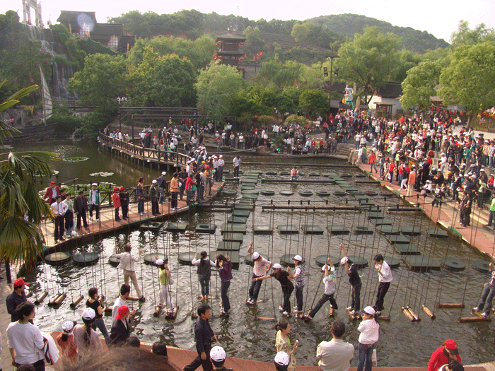 上圖:雙童旅游團在宋城游玩水上娛樂項目