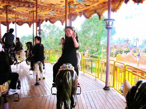 云霄飛車、海盜船、旋轉(zhuǎn)木馬、翻天覆地,每一個(gè)游樂項(xiàng)目前都晃動(dòng)著帶著雙童標(biāo)志的白色帽子,每一個(gè)風(fēng)景秀麗處都有我們的歡聲笑語飛出。大家互相交流著自己對每一個(gè)游樂項(xiàng)目的感受,到處都是興奮的笑臉。