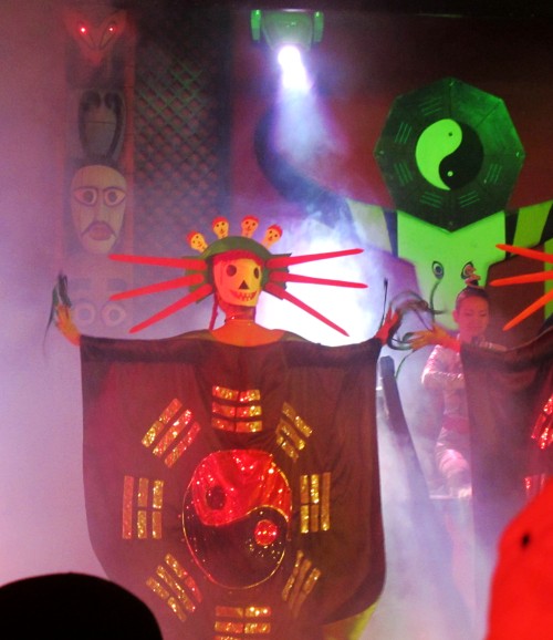 晚上6點(diǎn)半,夢幻谷最為著名的歌舞表演《夢幻太極》開始了,表演場館內(nèi)人頭攢動(dòng)、座無虛席。隨著一聲悠長的音樂,如夢似幻的舞臺(tái)上,各式各樣的美麗舞蹈輪番上演,一年四季的場景接連變換,我們的座位席上不斷爆發(fā)出陣陣熱烈的掌聲。