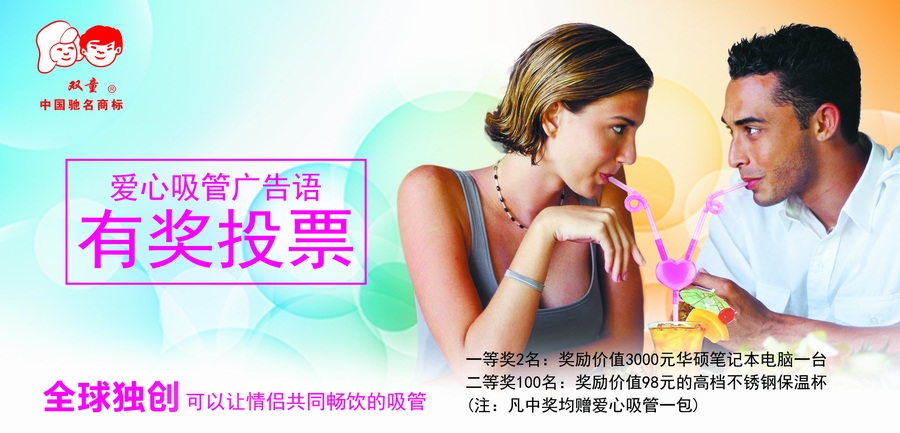 被征集的廣告語將用于我們 “愛心吸管”產(chǎn)品所有包裝正面的廣告詞。