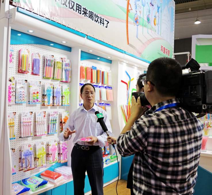 當(dāng)天,還有聞風(fēng)而來(lái)的包括央視、浙江衛(wèi)視、金華衛(wèi)視、義烏電視臺(tái)在內(nèi)的數(shù)家媒體將雙童的展位圍了個(gè)水泄不通。大家認(rèn)真聽著董事長(zhǎng)樓仲平講述關(guān)于一根吸管的變奏,一根簡(jiǎn)單的吸管,通過創(chuàng)新,通過技術(shù)改造,利潤(rùn)從幾分錢變到幾塊錢,究其本質(zhì),還是歸功于創(chuàng)新。創(chuàng)新吸管已經(jīng)不僅僅是用來(lái)喝飲料了,它更集趣味性、情感性、功能性于一體,小吸管窺探大世界。