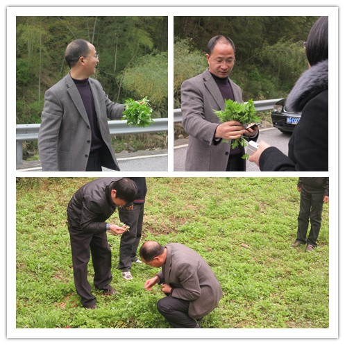 接著,樓總為我們選好了燒烤地點,是在一個小溪沙洲上。正當(dāng)大家拿著東西準(zhǔn)備走下去時,樓總的聲音在不遠(yuǎn)處響起:“快點來啊,這里有野菜哎!”大家趕過去一看,可不是,一地綠油油的野艾草,樓總一個人蹲在地上一邊摘野菜一邊興奮地朝我們說:“這個就是做清明果的菜料,非常香的!”樓總這么一說,大家更加心動了,連忙跟著樓總一起摘起了野菜。