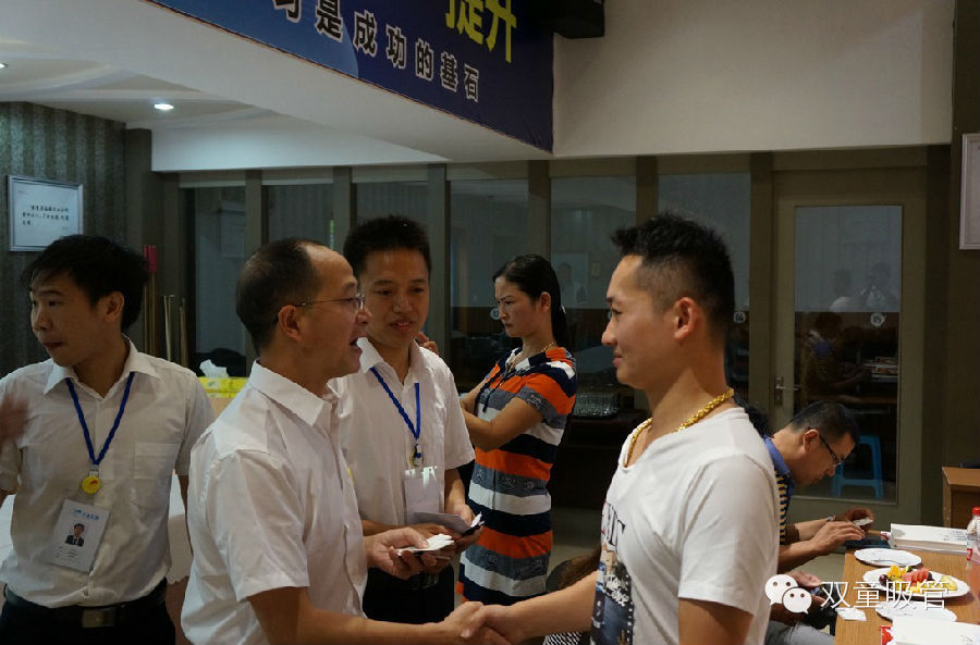 慶典開(kāi)始前的會(huì)場(chǎng),樓總再次與參與慶典的客戶,一一握手致敬,并互相交換名片。參與慶典的客戶有來(lái)自廣州的,來(lái)自武漢的,來(lái)自昆明的,來(lái)自湖南的、來(lái)自湖北的、來(lái)自天山腳下烏魯木齊的……感謝每一位來(lái)自天南地北的珍貴嘉賓大熱天放棄工作來(lái)為雙童鼓掌吶喊。20年風(fēng)雨歷程,感謝你一路相伴,感謝每一位關(guān)注我們的朋友。