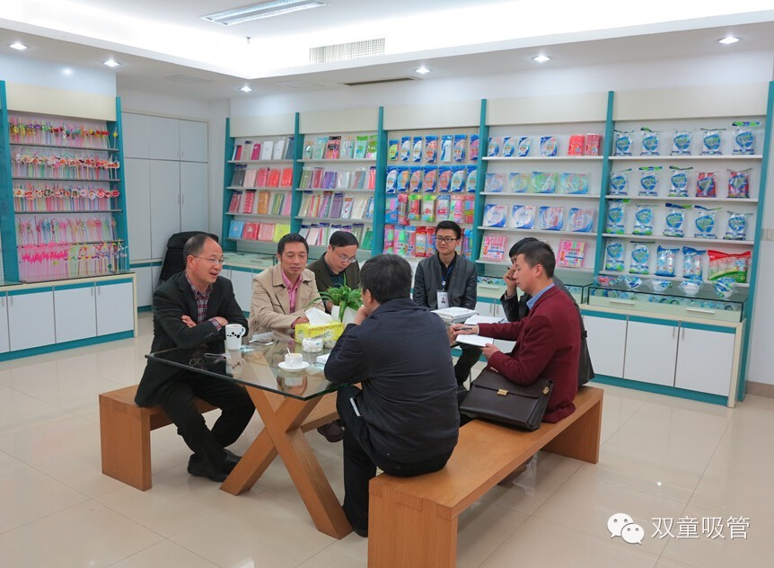 小劉記者剛走沒多久,兩批貴客像是約好了似的都來到雙童。一批是我們的義烏市紀委書記等六七位領(lǐng)導(dǎo),另一批則是二三十號阿里巴巴同學(xué)會的boss們。我們的幾位高層領(lǐng)導(dǎo)分頭行動,帶領(lǐng)著這兩支隊伍參觀雙童的節(jié)能降耗、員工寢室、產(chǎn)品樣品房……不得不說,幾位領(lǐng)導(dǎo),你們真是蠻拼的,可以去考導(dǎo)游證啦!尤其是當家人,在“導(dǎo)游工作”結(jié)束后,搖身一變成了會議室里的“講師”,為我們的阿里巴巴同學(xué)會的boss們上了一堂精彩的《“雙童”為什么堅持只做一根吸管》課程,到今天,都還有同學(xué)來找吸管妞要昨天的課件呢!
