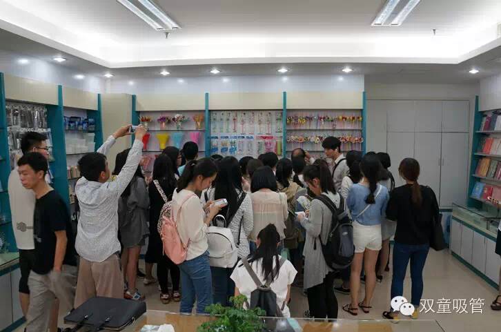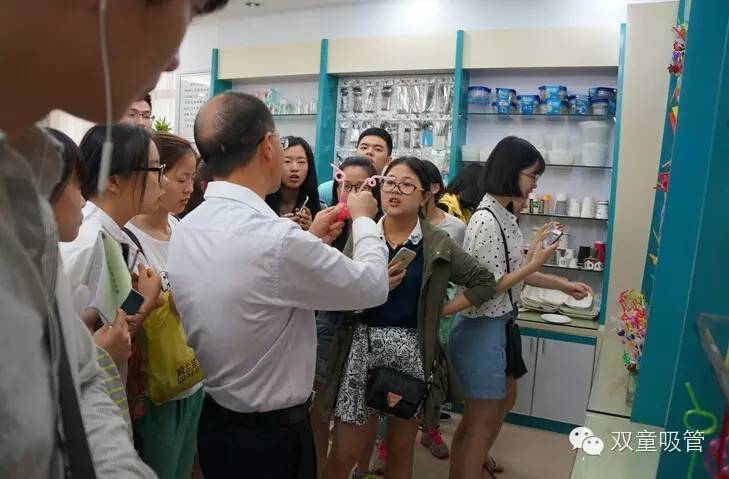 而當(dāng)參觀隊伍匯總到樣品房時,當(dāng)家人的“導(dǎo)游”講解更加賣力了: “這根吸管埋在土里三個月就能自行降解,因為它是玉米淀粉做的?!?“哇!” “這根吸管有二十多個零配件,有好幾項專利。” “哇!” 在雙童吸管樣品房里,隨著當(dāng)家人樓總對產(chǎn)品的介紹,浙師大的妹子們一起發(fā)出的贊嘆不絕于耳!