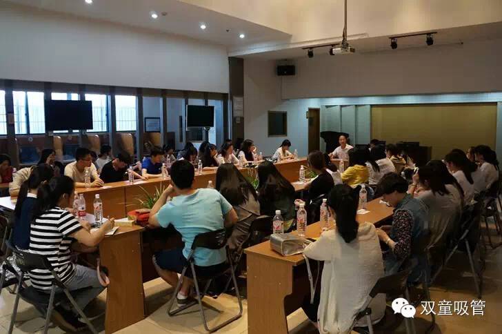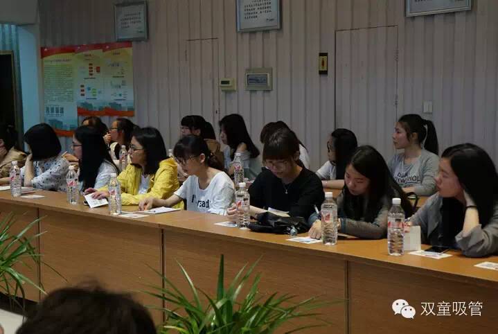 參觀完畢,大家就坐下來好好和當(dāng)家人進(jìn)行溝通互動吧!童鞋們紛紛把剛才參觀時所產(chǎn)生的疑慮和困惑一一向當(dāng)家人進(jìn)行提問?!叭绻麃砟銈児緦嵙?xí),你們看重員工的什么素質(zhì)呢?”“雙童是如何保持源源不斷的創(chuàng)新能力呢?”“雙童的商標(biāo)背后有沒有什么故事?”各種千奇百怪的問題都被童鞋們提了出來,而當(dāng)家人則是把每個問題都解釋得清晰明了,童鞋們也是拿著筆記把各種數(shù)據(jù)和關(guān)鍵詞都記了下來,據(jù)說回去還要交報告和作業(yè)呢!這么認(rèn)真,也是拼啦!