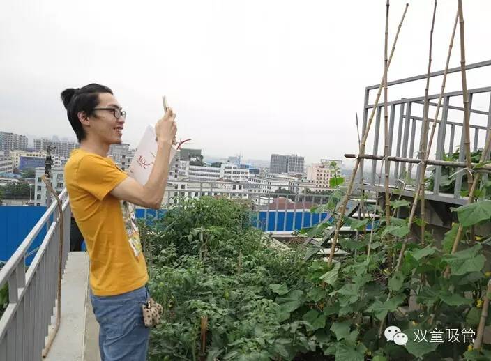 看,我們的大主持人田野在參觀九樓菜園看到這么一片原生態(tài)的“田野”也禁不住拿出手機拍幾張啦!而調(diào)皮的當(dāng)家人非要拉著田野在自己的“田野”里拍照留念。吸管妞真想對當(dāng)家人說,讓我也來合影幾張呀!