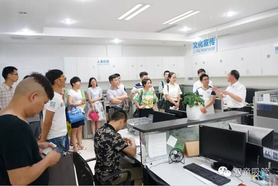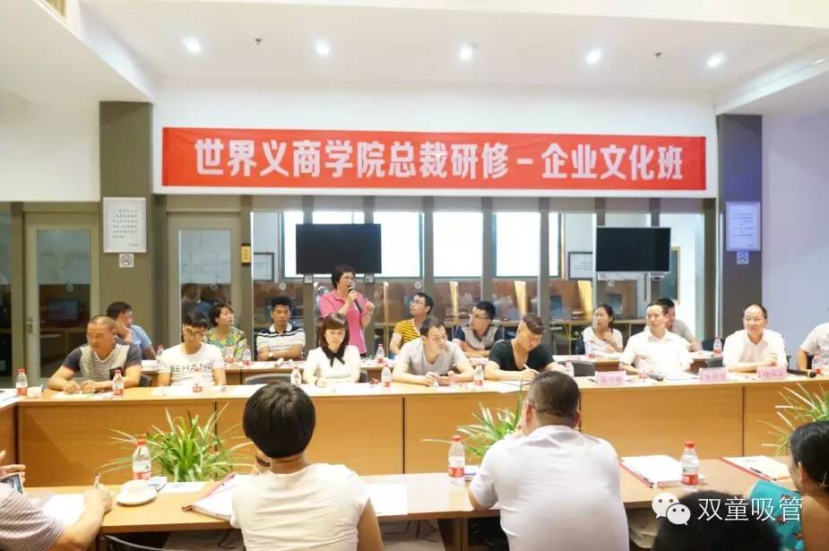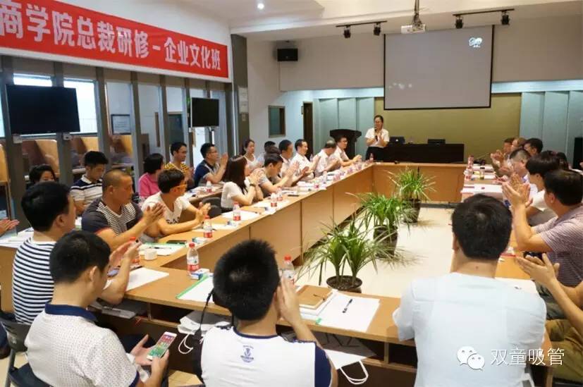 在參觀完畢后,所有學(xué)員又重新回到了九樓閣,參加接下來(lái)的重頭戲——企業(yè)交流會(huì)。會(huì)議一開(kāi)始,由義烏市企業(yè)聯(lián)合會(huì)會(huì)長(zhǎng)賈貴南發(fā)表講話。說(shuō)到賈會(huì)長(zhǎng),他和雙童的淵源可深的很呢!早在2006年,當(dāng)時(shí)義烏市經(jīng)發(fā)局的賈局長(zhǎng)陪同國(guó)家中小企業(yè)司的顧司長(zhǎng)來(lái)雙童參觀,顧司長(zhǎng)參觀后感慨:我終于找到了夢(mèng)寐以求的企業(yè)!從此之后各個(gè)社會(huì)媒體都在政府的推動(dòng)下開(kāi)始關(guān)注雙童吸管。所以說(shuō),沒(méi)有賈局的推薦就沒(méi)有今天的雙童吸管。吸管妞代表所有雙童人要向賈局表達(dá)最深切的謝意!