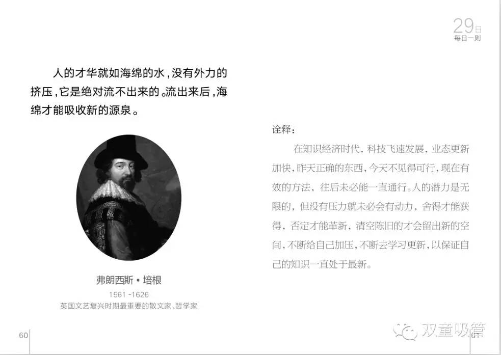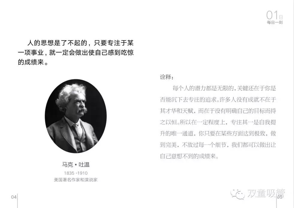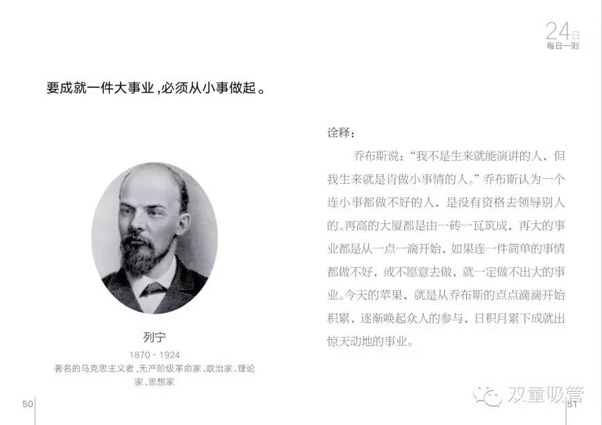 而這一本《每日一則》將會(huì)在印刷成冊(cè)后發(fā)給雙童的每一位員工,要求員工每天都按照上面的日期標(biāo)號(hào)進(jìn)行誦讀理解,一個(gè)月31篇,一年就可以將每篇名言都誦讀12遍。