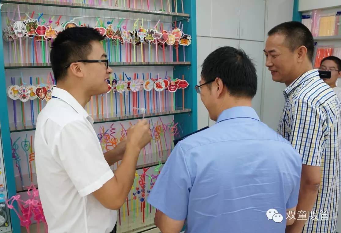 首先,領(lǐng)導(dǎo)們在二當(dāng)家李二橋的引領(lǐng)下來到樣品室,參觀雙童吸管的眾多專利創(chuàng)新產(chǎn)品,并了解到全球與吸管有關(guān)的專利中三分之二是由雙童吸管研發(fā)申請!