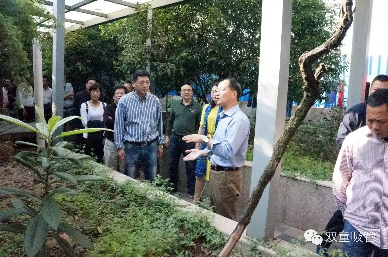 民企聯(lián)合會的一行眾人,由于人數(shù)眾多,分別由樓總和李總帶領兩支隊伍參觀我們的雙童,參觀時好不熱鬧!首先來到了我們的中水回收池塘這個雙童的“著名景點”,樓總給眾人講解了我們雙童的廢水循環(huán)利用的系統(tǒng)和原理,眾人對雙童關于綠色環(huán)保的做法給予了極大的肯定!
