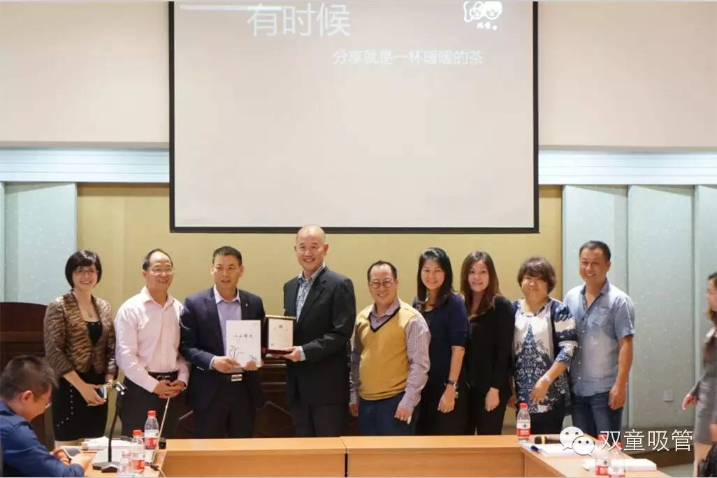 會(huì)后,馬來西亞商貿(mào)考察團(tuán)還贈(zèng)送了我們?nèi)沼闷穮f(xié)會(huì)一塊精美的牌匾,為表感謝,我們回送了對(duì)方每人一份的雙童禮品,內(nèi)含我們雙童的文化手冊四本及精美的創(chuàng)新吸管套裝!