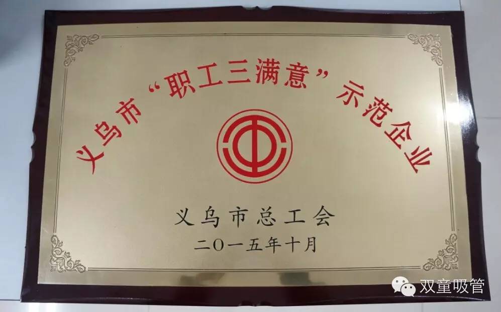 在雙童的行政樓走道上,掛著七八十塊的榮譽(yù)牌匾,這塊榮譽(yù)墻一直都讓雙童人引以為傲!近日,我們的榮譽(yù)墻又多了一塊榮譽(yù)牌——“義烏市‘職工三滿意’示范企業(yè)”。