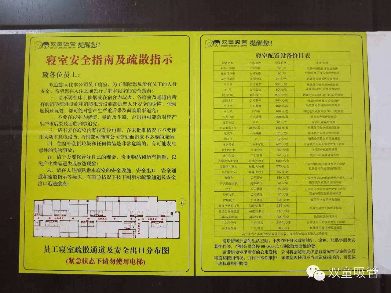 寢室安全指南及疏散指示和寢室配置設(shè)備價(jià)目表